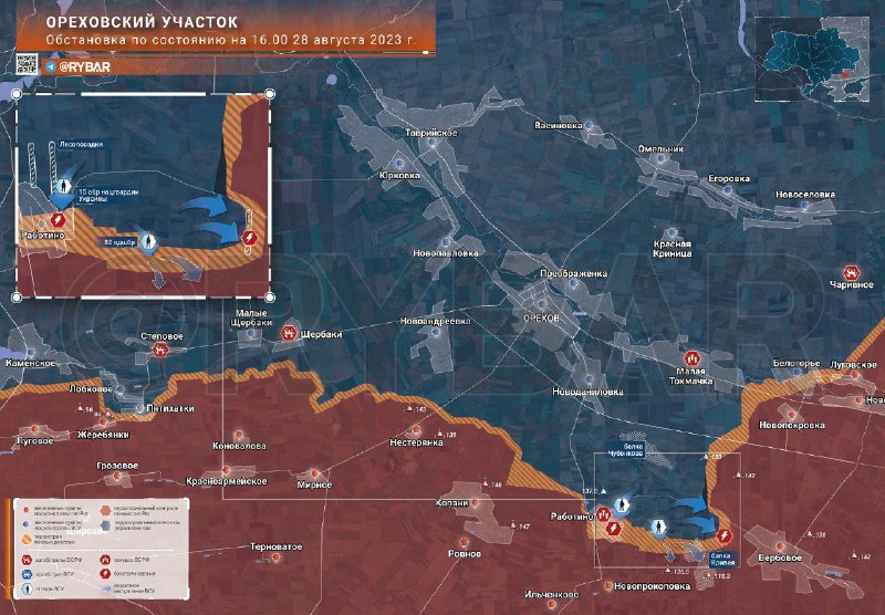 Ореховский участок, обстановка по состоянию на 28 августа 2023 года от Телеграм-канала Рыбарь: