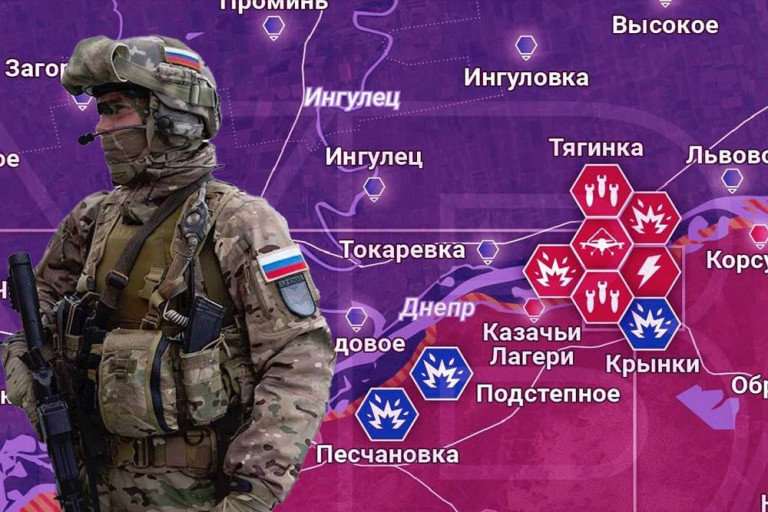 Ситуация на левом берегу, несмотря на уменьшение площади украинского плацдарма, продолжает оставаться напряжённой. Идёт активная контрбатарейная борьба, применяются дроны.
