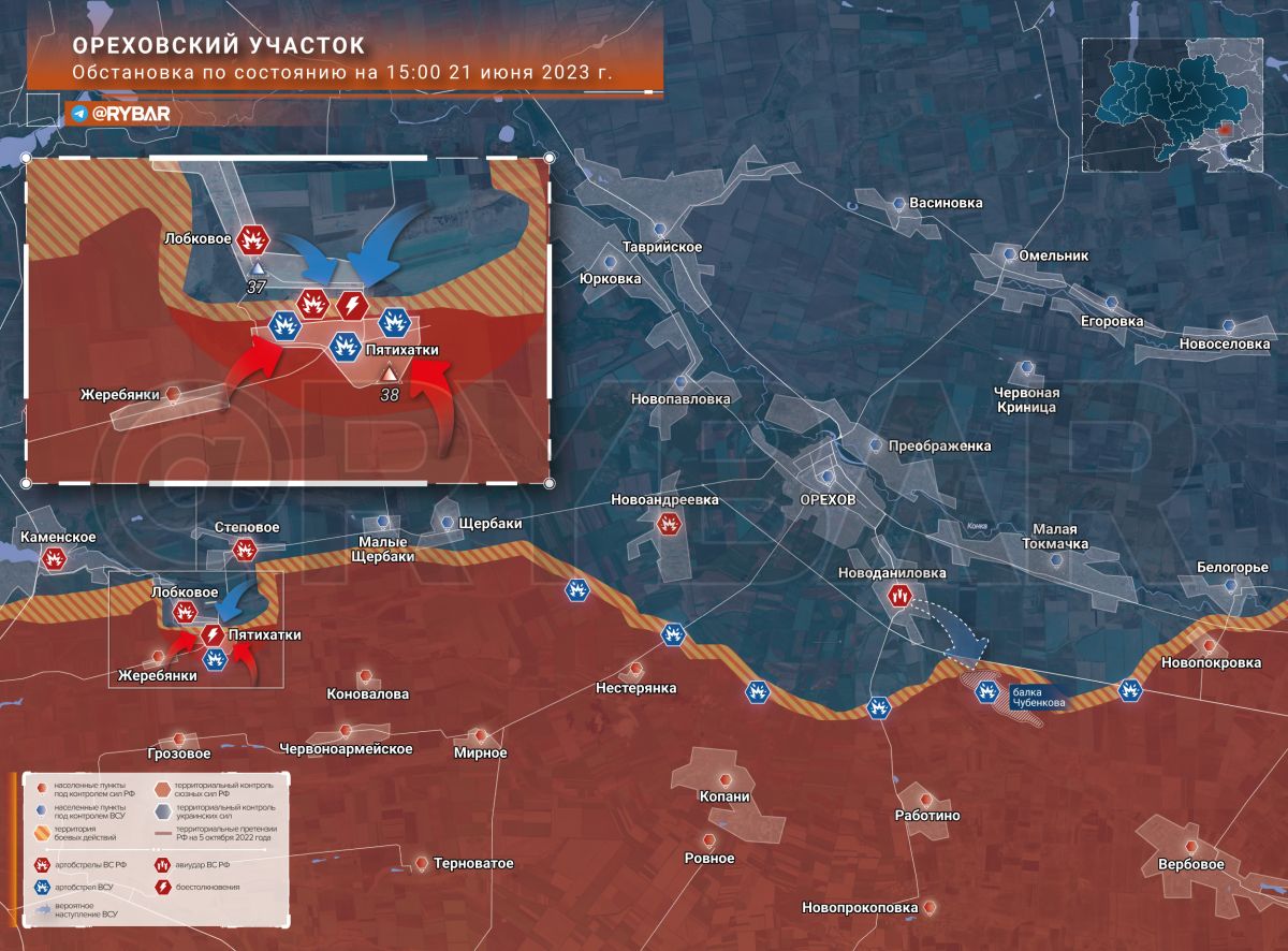 О ситуации на Запорожском направлении на 21 июня 2023 года от Телеграм-канала «Негуманитарная помощь. Разведка».