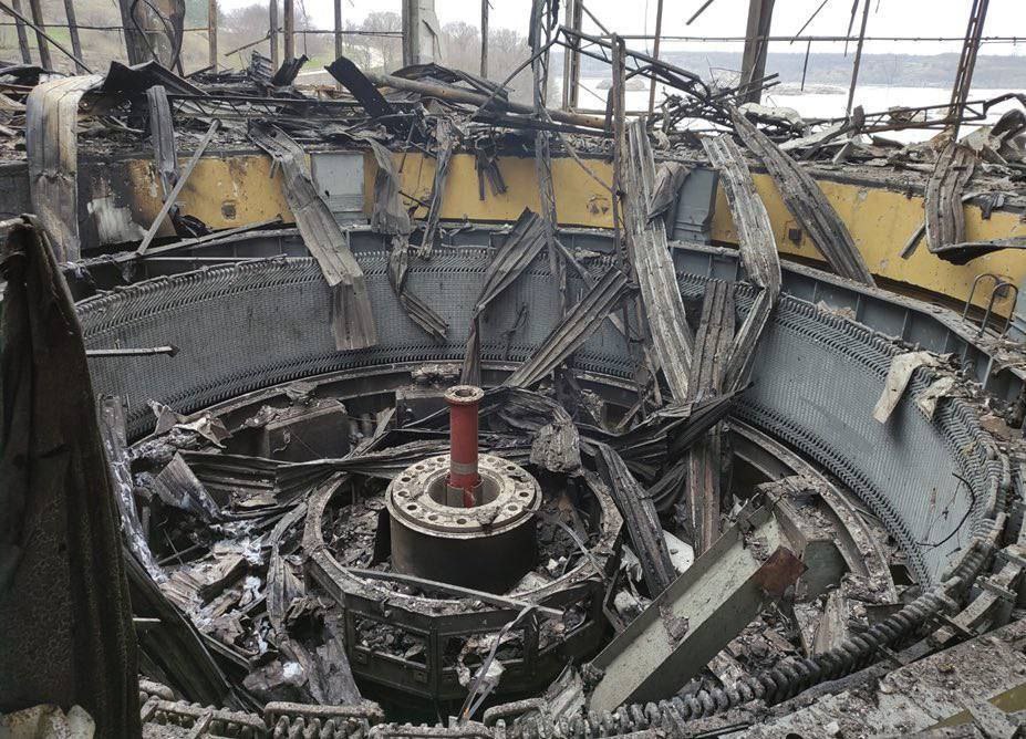 Масштаб разрушений машинного зала 2-й очереди на Днепровской ГЭС, после прилёта крылатых ракет ВС РФ.
