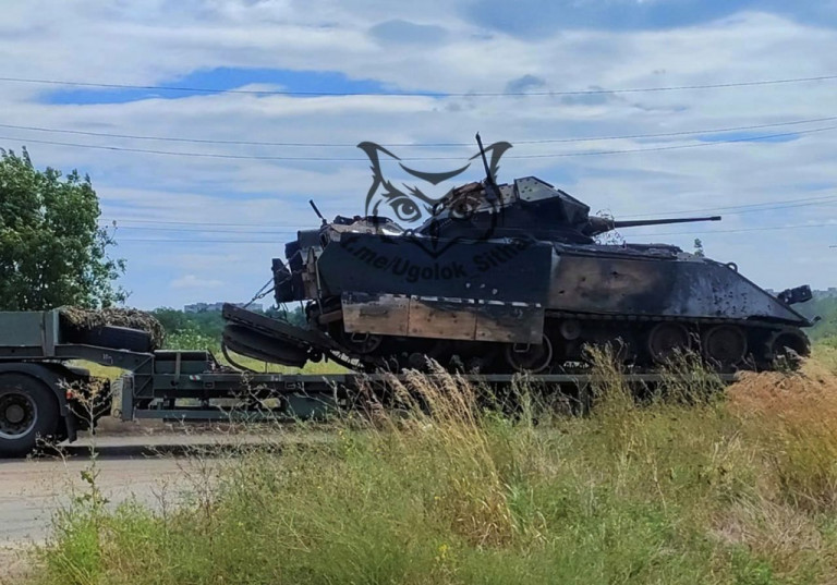 На заглавном фото: Уничтоженная американская БМП M2A2 Bradley в Запорожской области. Вывозят на трале, пишет телеграм-канал Dambiev
