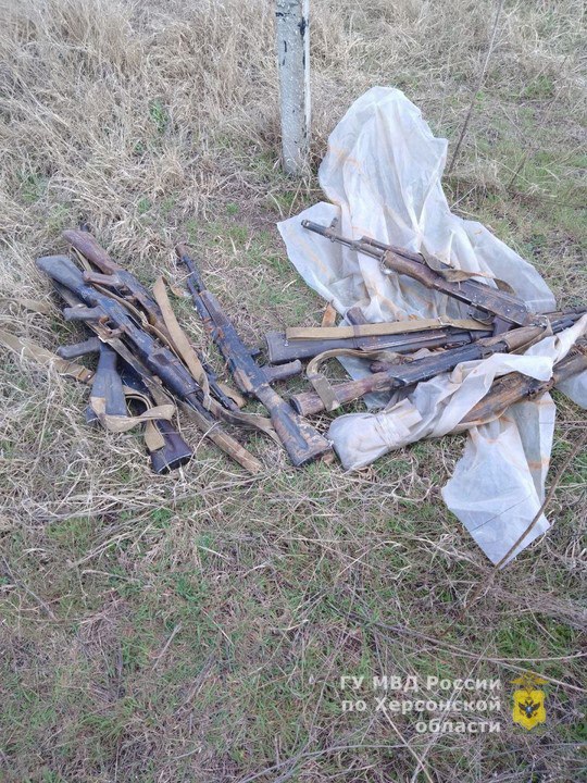 Сотрудники уголовного розыска в Алёшковском муниципальном округе Херсонской области в ходе плановой проверки территории выявили тайник с вооружением на окраине села Челбурда.
