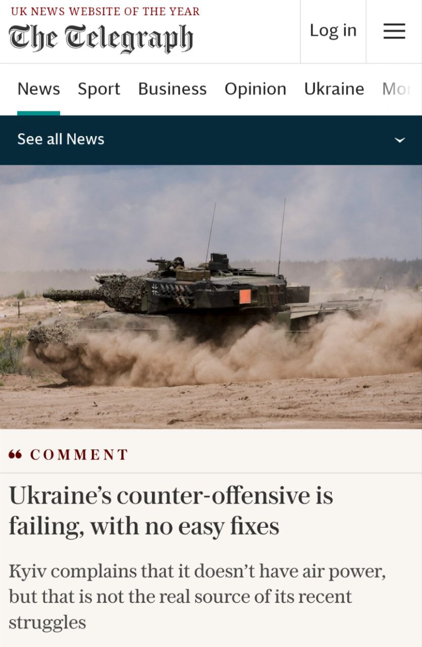 «Поскольку по прошествии шести недель значительного прорыва не произошло, стоит задаться вопросом, может ли контрнаступление Украины хоть когда-либо увенчаться успехом, ведь сейчас оно определённо не выглядит успешным. Готовы ли украинцы – в военном, политическом, финансовом отношении – проводить месяцы, а возможно, и годы этих атак, чтобы прорвать оборонительные позиции России? Министерство обороны Великобритании описало эти российские укрепления как одни из самых обширных систем военных оборонительных сооружений, виденных где-либо в мире», – говорится в статье британской газеты The Telegraph.