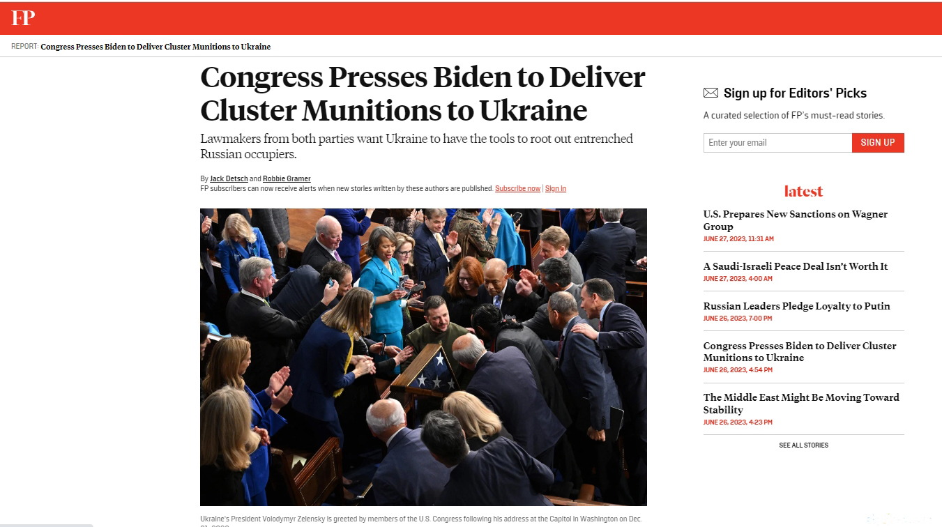 Ещё один американский журнал Foreign Policy сообщает – конгрессмены настаивают на передаче для ВСУ кассетных боеприпасов.
