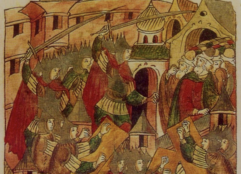 Заглавная иллюстрация: Взятие Владимира монголами. Миниатюра из русской летописи. Фрагмент