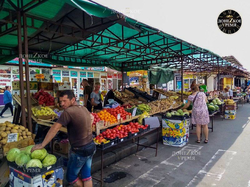 Донецкий рынок у железнодорожного вокзала сгорел дотла, но продолжает работать – пишет Телеграм-канал Донецкое время.