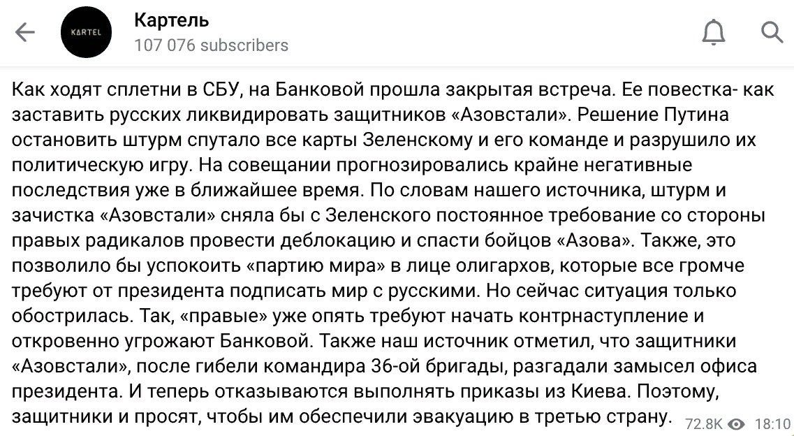 По нашим данным, многие украинцы начали читать русские телеграм каналы, в надежде, что смогут «случайно» увидеть там больше информации про своих родных и знакомых, которые сейчас воюют на линии соприкосновения, ведь нашем СМИ и ЛОМам запрещено публиковать «плохую» информацию, а только «позитивные новости», чтобы держать массы в иллюзии победы, – пишет украинский Телеграм-канал Легитимный.