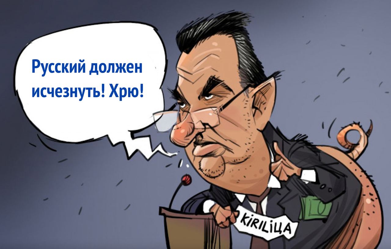 «Русский язык должен исчезнуть с территории Украины вообще, как элемент враждебной пропаганды. Английский является обязательным, наш родной язык является обязательным. Насаждать сюда эти российские нарративы очень опасно. Нам от них ничего не надо, пусть отойдут на свои болота и квакают на своём русском языке», – заявил принесённый ветром судьбы в высокое кресло прямо из 90-х уроженец Красного Луча и бывший градоначальник Луганска.