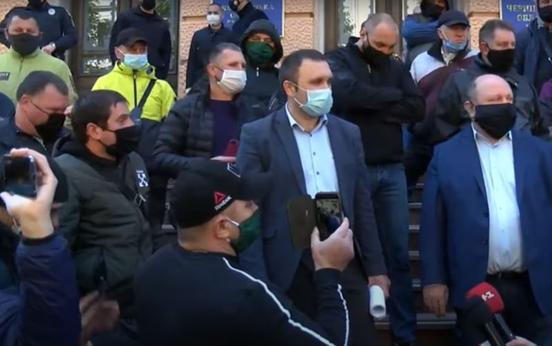 На фото. Митинг предпринимателей у стен Черновицкой ОГА, источник – Телекомпанія ТВА