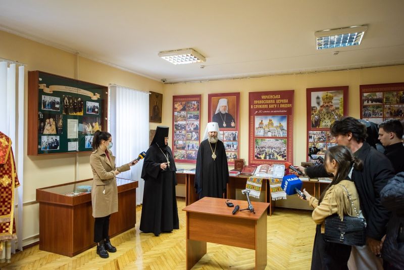 Игумения Серафима (Шевчик) и митрополит Антоний (Паканич) на открытии выставки «Украинская Православная Церковь в служении Богу и людям»