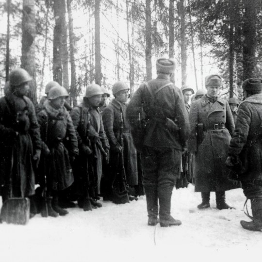 Прообразом памятника является рядовой сводной роты 3-го Украинского фронта Алексей Иванович Скурлатов, бывший стрелок 10-го отдельного лыжного батальона 922-го стрелкового полка, после тяжёлого ранения переведённый в связисты.