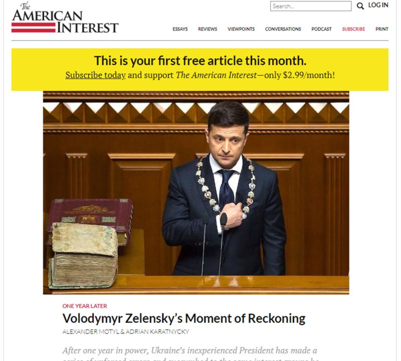 «Год назад, 20 мая, Владимир Зеленский принёс присягу, став шестым демократически избранным президентом Украины. Он одержал уверенную победу, получив 73% голосов украинских избирателей. Это был самый убедительный мандат доверия за всю 30-летнюю историю независимой Украины. Но он пришёл к власти на волне популистских обещаний: окончание войны в Донбассе, ликвидация коррупции, привлечение инвестиций, огромный экономический рост», – пишет The American Interest.