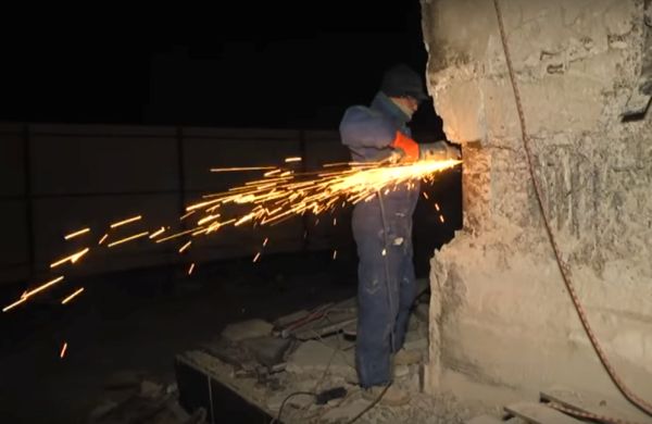 Работники компании «Промальтбуд» более шести часов пытались свалить самую высокую часть конструкции на землю. Для этого отбойным молотком сбивали бетон, а болгаркой надрезали арматуру и другие металлические части. Но стела устояла.