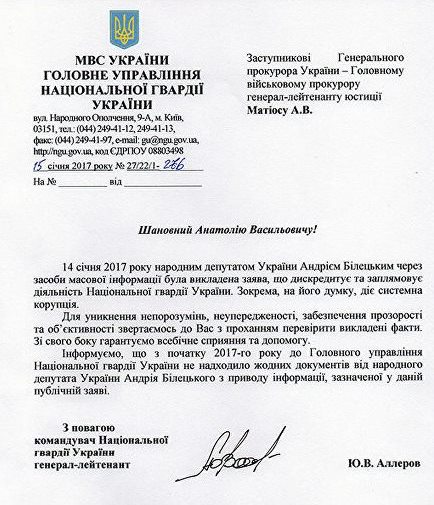 Опубликованный опус, уже бросилось опротестовывать командование НГУ, обратившись к прокурору Матиосу с просьбой тщательно проверить изложенные факты.