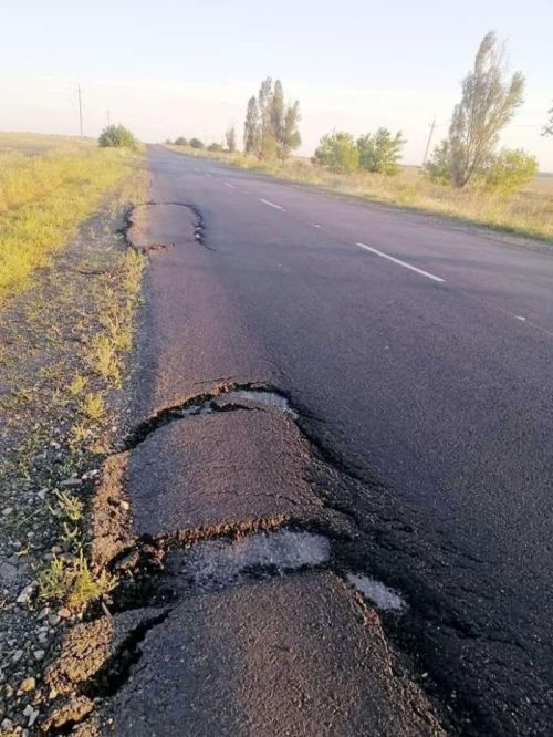 Фотофакт. «Велике розачарування». И двух месяцев не прошло после того, как президенту Украины Владимиру Зеленскому гордо доложили – разбитая дорога под Запорожьем отремонтирована по всем «европейским стандартам». Президентский проект «Большая стройка» – звучит гордо! Но в очередной раз что-то пошло не так и вполне вероятно, что до весны дорога не доживёт.