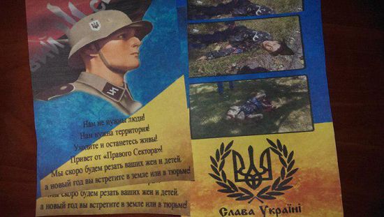На днях территория ДНР была обстреляна из 122-мм орудий, которых не должно быть вблизи линии разграничения. Часть снарядов оказалась из категории «агитационных»: вместо взрывчатки они содержали листовки с угрозами в адрес жителей Донбасса. «Нам не нужны люди! Нам нужна территория! Уезжайте и останетесь живы! Привет от «Правого Сектора»! Мы скоро будем резать ваших жён и детей, а новый год вы встретите в земле или тюрьме», - написано в этих листовках.