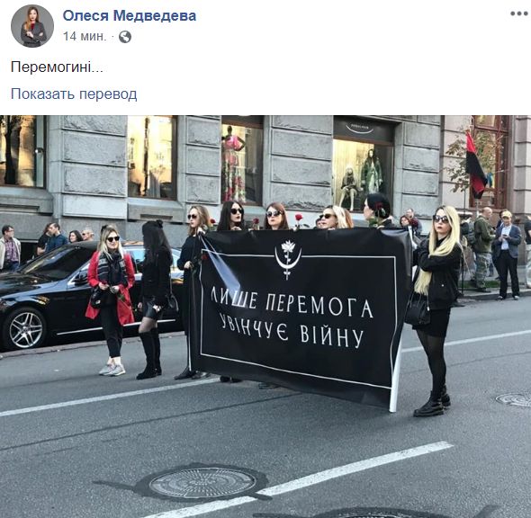 Фото. …А девушки в чулках и ботфортах несут лозунги «Только победа венчает войну»