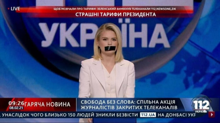Тем временем 8 февраля журналисты NewsOne, 112 и ZiK, потерявшие работу, вышли в эфир с заклеенным ртами. Так они выразили протест против наступления на свободу слова.