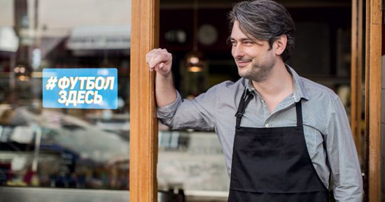 В день открытия чемпионата во многих кафе и ресторанчиках были приготовлены плазмы на улицах и внутри, а на вывесках и штендерах мелом были написаны анонсы игр. Реклама скромная, но всем понятная.