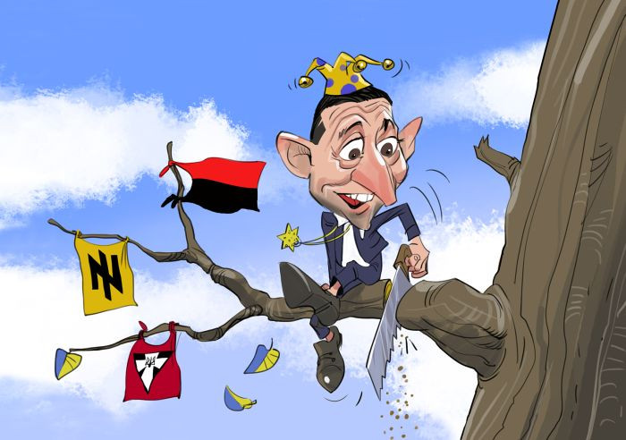 Президент Зеленский всё чаще демонстрирует свой страх перед национал-радикалами и всячески старается им угодить. То он публично от имени всей Украины поддерживает нациствующего футболиста Романа Зозулю, то обходит молчанием антисемитские речи Василия Марущинца из МИД. Похоже, у отца президента, недавно назвавшего часть украинского народа «биомассой», есть повод для беспокойства за сына.