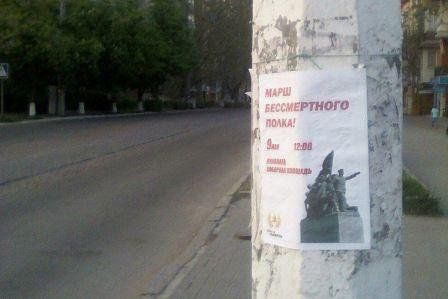 Ведь украинские СМИ назвали сам плакат «провокацией к 9 мая». Провокацией нацисты вслед за властью обозвали листовки с призывом поддержать ветеранское шествие. И, похоже, для них является провокацией само название "Бессмертный полк".