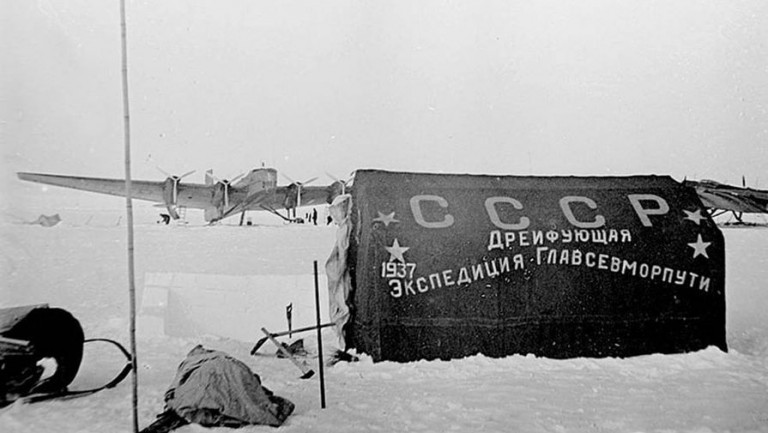 Первая в мире советская полярная арктическая дрейфующая научно-исследовательская экспедиция «Северный полюс-1» началась 21 мая 1937 года и продолжалась до 19 февраля 1938 года. За 274 дня дрейфа четверка полярных исследователей Иван Папанин, Эрнст Кренкель, Евгений Фёдоров и Пётр Ширшов преодолели на льдине более двух тысяч километров. Участники экспедиции провели огромную научную работу, измеряя скорость дрейфа и морских течений и выполняли сотни других исследований. В ходе экспедиции льдина начала разрушаться, и полярники отправили радиограмму: «В результате шестидневного шторма в 8 утра 1 февраля в районе станции поле разорвало трещинами от полкилометра до пяти. Находимся на обломке поля длиной 300, шириной 200 метров. Отрезаны две базы, также технический склад… Наметилась трещина под жилой палаткой. Будем переселяться в снежный дом. Координаты сообщу дополнительно сегодня; в случае обрыва связи просим не беспокоиться». Для их эвакуации были направлены два ледокола – «Мурман» и «Таймыр», которые и сняли зимовщиков с ледяного обломка. Все четверо полярников получили звание Героя Советского Союза.