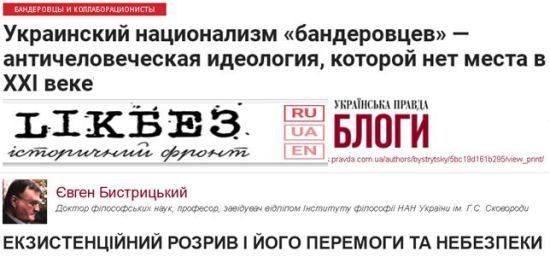 Но верхом безумия в этой области можно считать другую статью, размещённую «Свободой». Её автор некто Евгений Быстрицкий, называющий себя доктором философских наук и профессором.