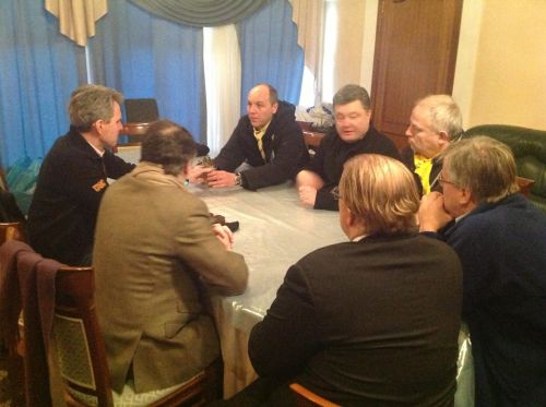 Февраль 2014 года. Посол США с майдановцами (Парубий, Порошенко, Кубив)