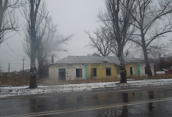 Поселок шахты «Трудовская» в Петровском районе города Донецка расстреливали в новогоднюю ночь точно так же, как на протяжении уже трех лет. В результате этих обстрелов дома и улицы выглядят как кадры черно-белой хроники времен Великой Отечественной войны. Белый снег и обугленные руины домов, черные поваленные заборы, почерневшие стебли бурьяна, окружающие запустением, заполоняющие грустью подворья и улицы.