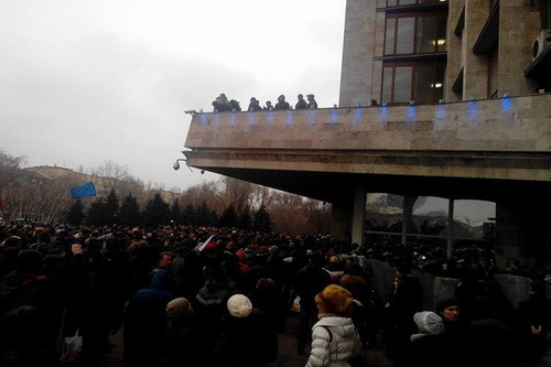 А вечером несколько сотен митингующих прорвали оцепление милиции и вошли в здание ОГА.