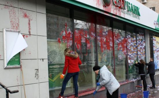 И вдруг 28 марта те же самые активисты стали разбирать свои завалы, отмывать витрины, срывать стикеры. Как оказалось, они решили дать возможность согражданам, хранящим в банках сбережения, забрать свои сбережения. Но радикалы сообщили, что проконтролируют продажу Сбербанка, на втором этапе будут последовательно добиваться закрытия всех его филиалов.