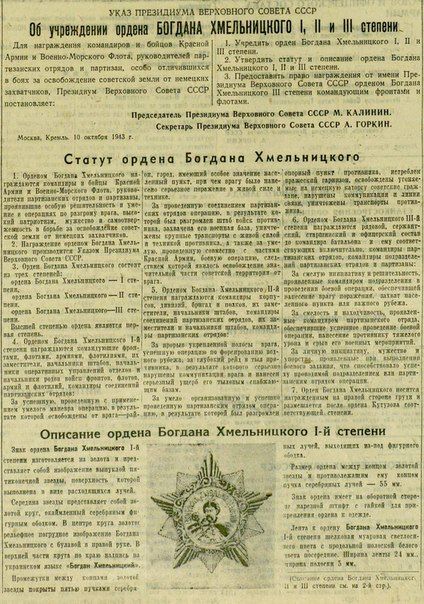 На этом история ордена заканчивается, но у него появился «дальний родственник». В 1995 году, накануне 50-летия Великой Победы, которую на Украине тогда праздновали, президент Кучма учредил новый орден Богдана Хмельницкого.
