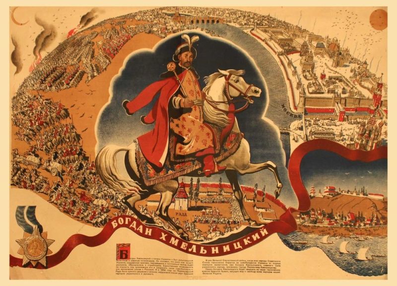 Необходимо отметить, что фигура гетмана, поднявшего войну против поляков, победившего в ряде крупных битв, способствовавшего принятию Переяславской присяги, в Советском Союзе была почитаема. В ряде советских городов ещё до войны появились улицы в честь гетмана, на Запорожском авиамоторном заводе имени Баранова был установлен второй (кроме киевского) памятник Хмельницкому, (он был вывезен в Омск во время эвакуации).