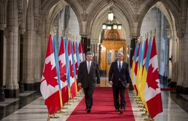 В Канаде речь также шла о двустороннем сотрудничестве в таких сферах, как торговля, инвестиции, информационные и аэрокосмические технологии. В частности, о намерении запустить совместно с Канадой телекоммуникационный спутник, построенный канадской компанией для передачи сигнала на всю территорию Украины. Порошенко выразил надежду на заключение в перспективе между Украиной и Канадой соглашения о свободной торговле.