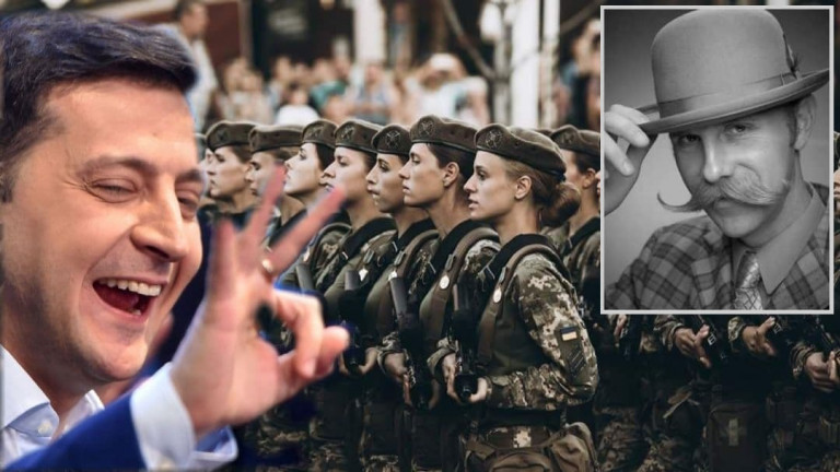 Президент отметил, что даже хочет представлять ситуацию, когда Россия может напасть, то есть не признаёт или не знает, что та уже нападала с какой-то другой стороны – об этом же трубят на каждом углу почти семь лет! Но к большой войне Зеленский как Верховный главнокомандующий ВСУ готов. Причём громить «напавшие с другой стороны» войска РФ будет не лучшая армия Европы, а мобилизованные мужики и бабы. Как сказал Зе: «Мы никуда не уйдём, мы все будем воевать, все будут мобилизованы – и мужчины, и женщины». Этакий зефольксштурм с предсказуемыми последствиями.