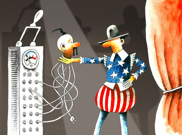 В этом месте автор пьесы прозрачно намекает, что одно слово правды, сказанное даже маленьким мальчиком, может разрушить ложь целой державы. Концепция более чем сомнительная. И наш патриотический коллектив её категорически не разделяет… Так! В чём дело?! Откуда вы?! СБУ?! Но мы же только что отмежевались! Мы можем написать коллективное письмо! Куда засунуть? Куда пройдём? Но за что?! Хорошо! Только руки не крутите!