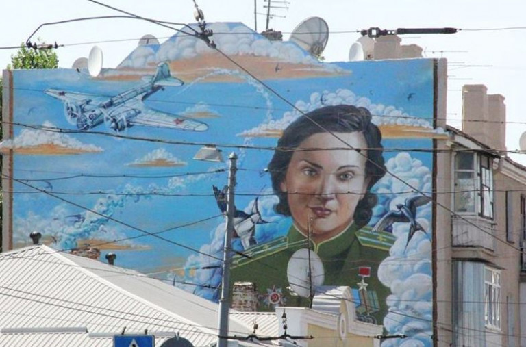 Заглавное фото: портрет В.С. Гризодубовой на стене дома в Харькове