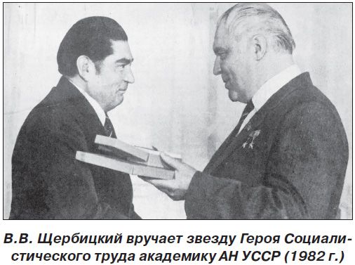 Первый секретарь ЦК КПУ Щербицкий вручает Шалимову Звезду Героя Социалистического Труда