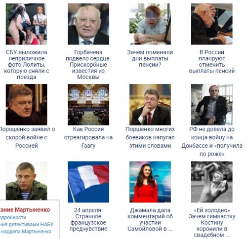 Например, на приложенном скриншоте с сайта «Вести.Украина» из наиболее популярных двенадцати новостных сообщений в девяти речь ведётся о событиях, связанных с российскими гражданами, политиками и властями.