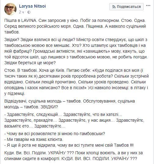 У писательницы Ницой случился приступ тамбовофобии, а киевский мэр Кличко, перепутав по цицероновой традиции слова «украшать» и «угрожать», сообщил, что в столице «необходимо создавать новые памятники, если необходимо — новые символы нашего города для того, чтобы они действительно угрожали».