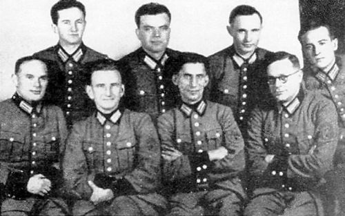 1942 год. Роман Шухевич (второй слева в нижнем ряду) с сослуживцами из 201-го охранного батальона, проводившего карательные операции на территории Белоруссии и находившегося в оперативном подчинении обергруппенфюрера СС Эриха фон дем Баха.