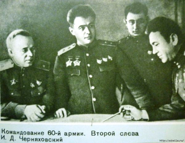 А после встречи с И.В. Сталиным Черняховский был назначен командующим 60-й армией, входившей в состав Центрального фронта под командованием К.К. Рокоссовского. Последний вспоминал: «Знакомясь с войсками 60-й армии, переданной нам из Воронежского фронта, я внимательно приглядывался к генералу И.Д. Черняховскому. Это был замечательный командующий. Молодой, культурный, жизнерадостный. Изумительный человек! Было видно, что в армии его очень любят. Это сразу бросается в глаза. Если к командарму подходят докладывать не с дрожью в голосе, а с улыбкой, то понимаешь, что он достиг многого. Командиры всех рангов остро чувствуют отношение старшего начальника, и, наверное, мечта каждого из нас – поставить себя так, чтобы люди с радостью выполняли все твои распоряжения. Вот этого Черняховский достиг».