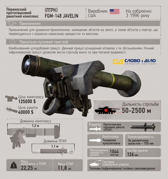 В декабре прошлого года появилась информация, что Украина получит летальное оружие, в списке которого должны быть 210 противотанковых ракет и 35 пусковых установок на 47 миллионов долларов.
