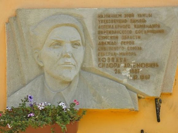 Памятная доска Сидору Ковпаку: на месте, но слегка поцарапана