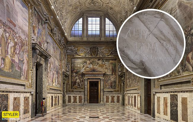 Кстати, о кипящем разуме патриотов, опять же – для «95-го квартала». В день возвращения Ермака украинцам сообщили, что оккупант за неделю увеличил поставки дизтоплива на Украину на 40%. Но, как известно, НИКТО (даже Семен Семенченко) строить редуты на железной дороге и блокировать «торговлю на крови» не поехал…А зачем, когда демонстрировать патриотизм можно в сытом Киеве. Или хотя бы в Риме, где отличились украинские туристки, испортившие фреску Рафаэля «Афинская школа» 1511 года, что находится в одном из залов Апостольского дворца в Ватикане. Европа стал ближе, вот они и нацарапали Рафаэлю: «Лена Тамара Винница». Знай наших, Эвропа!