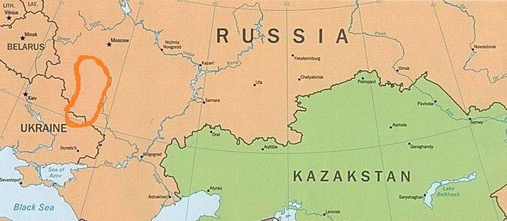 Примерно так, по мысли президента Вильсона, должна была выглядеть Россия после расчленения (обведено оранжевым)