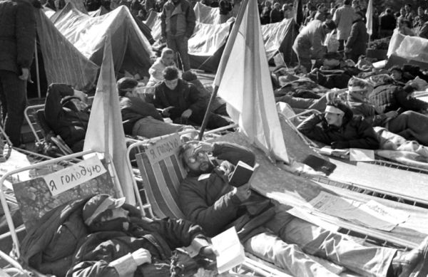 Началось это вторжение ещё за несколько лет до развала Советского Союза. С Западной в центральные, южные, северные и восточные регионы Украины были отправлены целые толпы галичан, которые поездами, автобусами и автомобилями везли сумки и баулы, набитые значками (пластмассовыми, в СССР не выпускавшимися), флажками и прочими «сувенирами» с жёлто-блакытной символикой, изготовленными методом шелкотрафарета, у нас не развитого, но на котором тогда выпускалось более 80% полиграфической продукции Запада. Их отлавливали, везомое отбирали, но они, молчаливые и угрюмые, возвращались вновь и вновь: нужно было приучить население и к петлюровско-бандеровскому флагу, и к щербатому тризубу, последними носителями которого были гитлеровские полицаи. В 1988 году по Киеву сначала робко, а затем всё более нагло и открыто замаршировали «вояки УПА»: если брать от этой даты, то Третьей Руине Украины уже исполнилось малоюбилейных 30 лет.