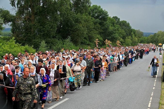 Так замкнется ход, начавшийся 3 июля из Святогорской лавры, с ходом, вышедшим 9 июля из Почаевской лавры. Все три южнорусские лавры, Свято-Успенские Богородичные, окажутся соединенными этим беспрецедентным, воистину космическим шествием. Именно такое впечатление ход производит на всех наблюдателей. Только сочувствующие глядят с воодушевлением, а противники — с ненавистью. Им, ненавистникам, такое количество паломников, участников никогда не собрать. А здесь люди сами идут, по молитвенному зову сердца. Невзирая на жару — в тени +38, на солнце +46!