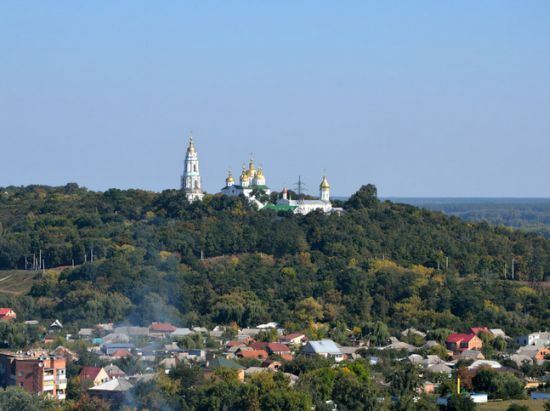 Монастырь на высоком холме. Издали виден.