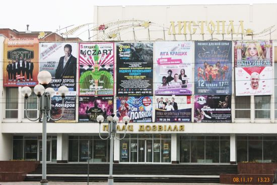 Чтобы не быть голословным, специально поехал в «Листопад», главный концертный зал города, и сделал фотографию фасада с афишами.